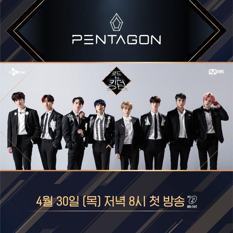 from april thirtieth to june eighteenth, pentagon participated in the mnet survival show, road to kingdom along with other lesser known groups with large potential. pentagon was the oldest group on the show and placed third overall. they released and preformed special versions of shine + spring snow , very good by block b, follow by monsta x, and their finale single, basquait. although pentagon did not move on to kingdom, they proved their talent to many and proved themselves as an amazing group with many talents in vocals, dance, rap and producing.